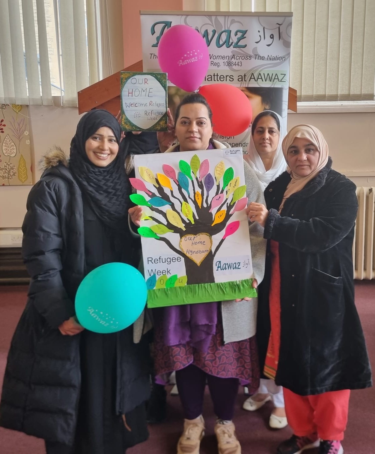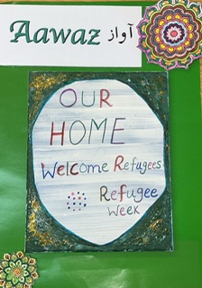 “We painted this canvas in today’s workshop, we have had a wonderful discussion all together at Aawaz” Ms J