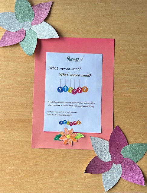We have started our consultation process finding out “what women want”. Aawaz Chairperson Noshin Hussain said that “Its about understanding how Aawaz and other agencies can offer better supportĀ  to our client group.